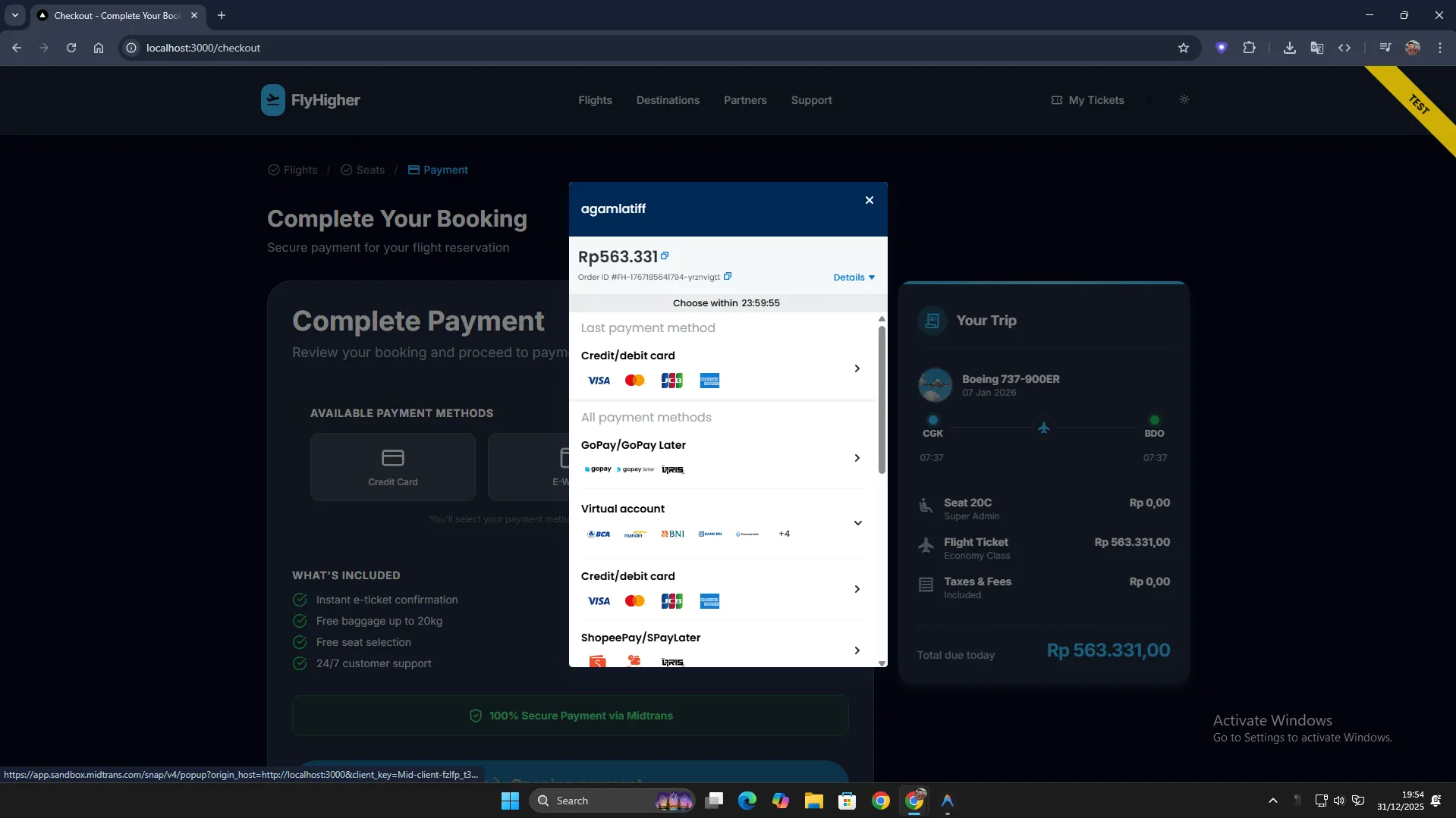 Support for multiple payment methods via Midtrans.