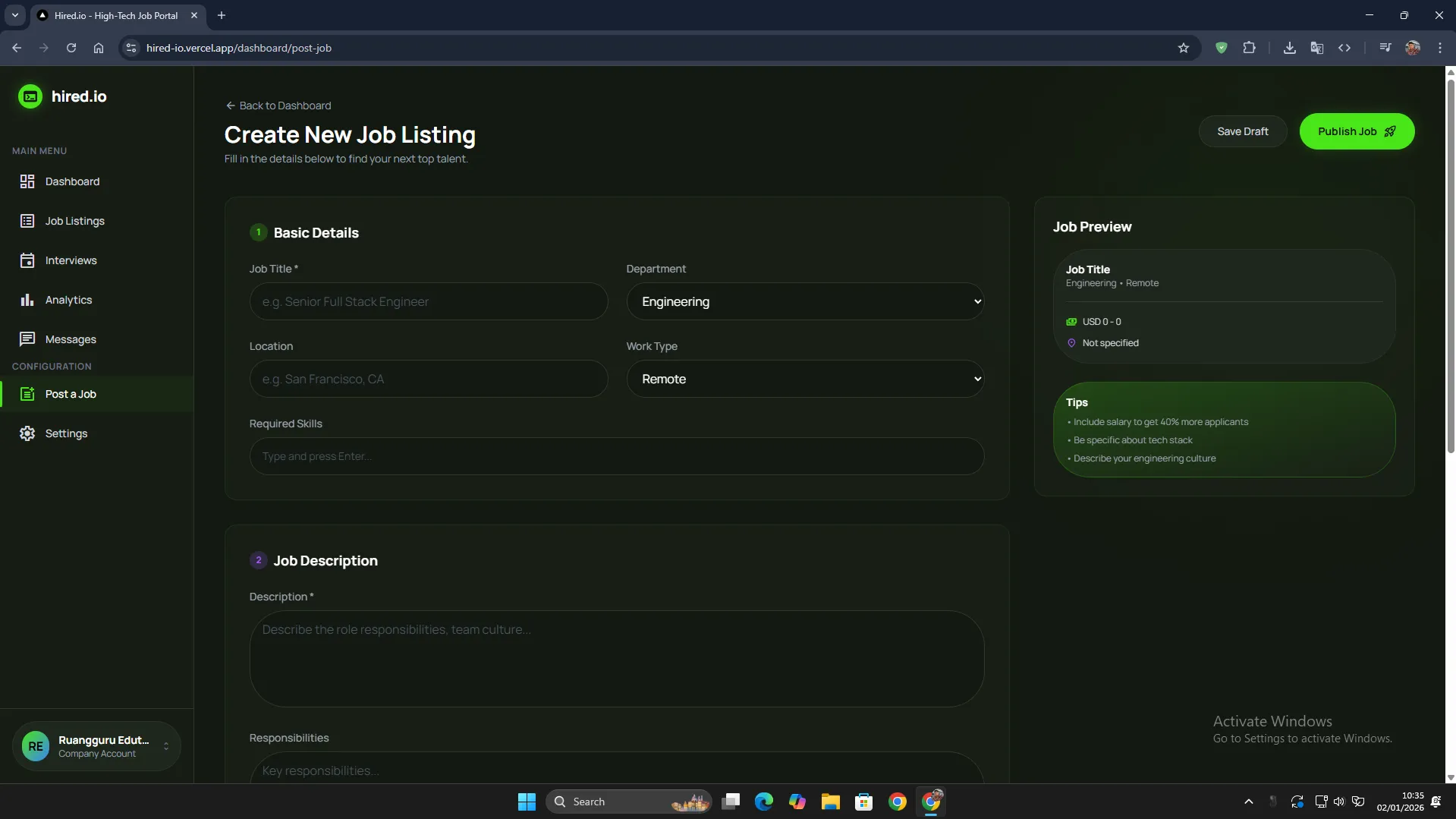 A recruitment platform that bridges talented professionals with innovative companies. It streamlines the entire hiring journey from job discovery to candidate management.