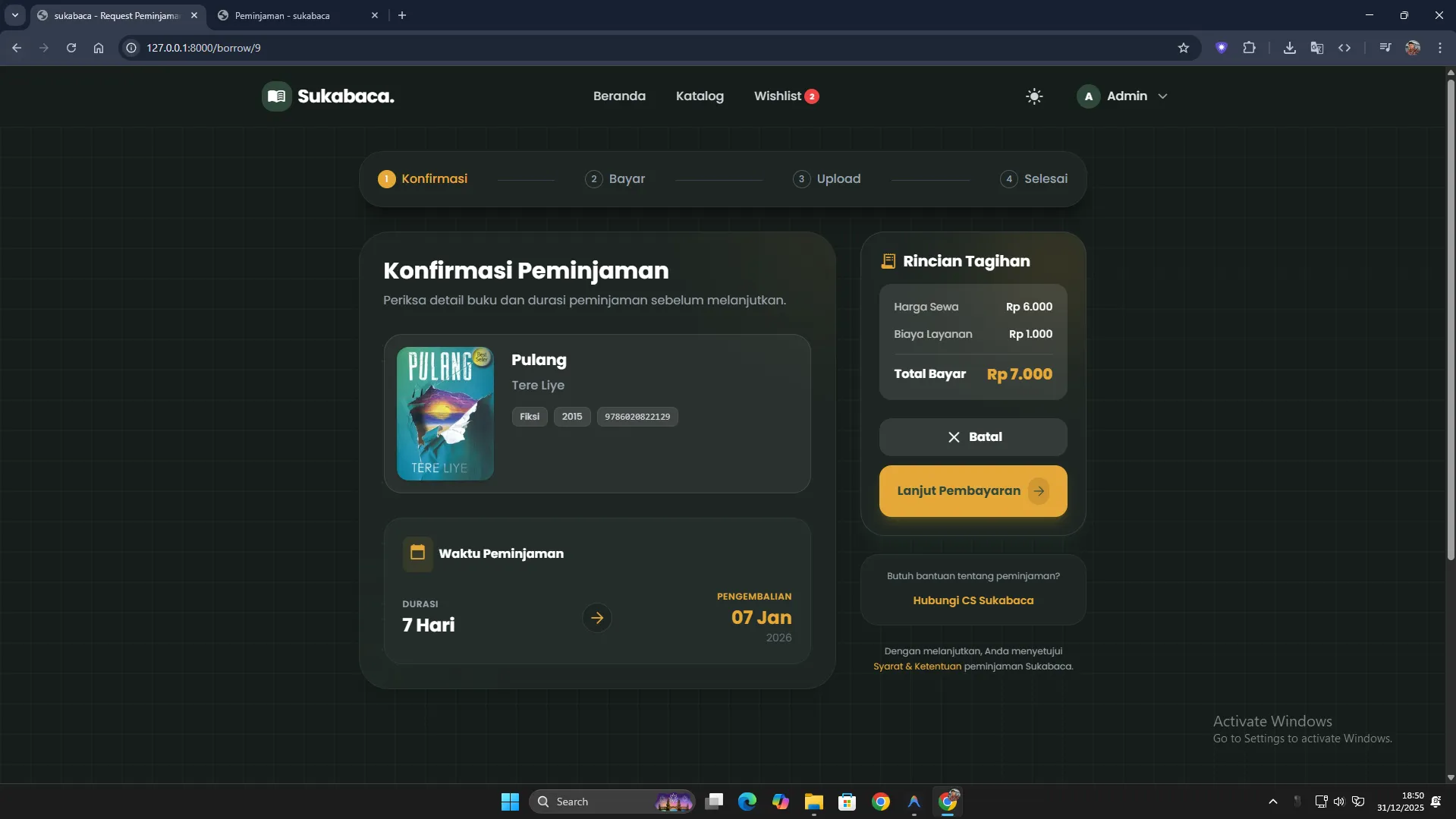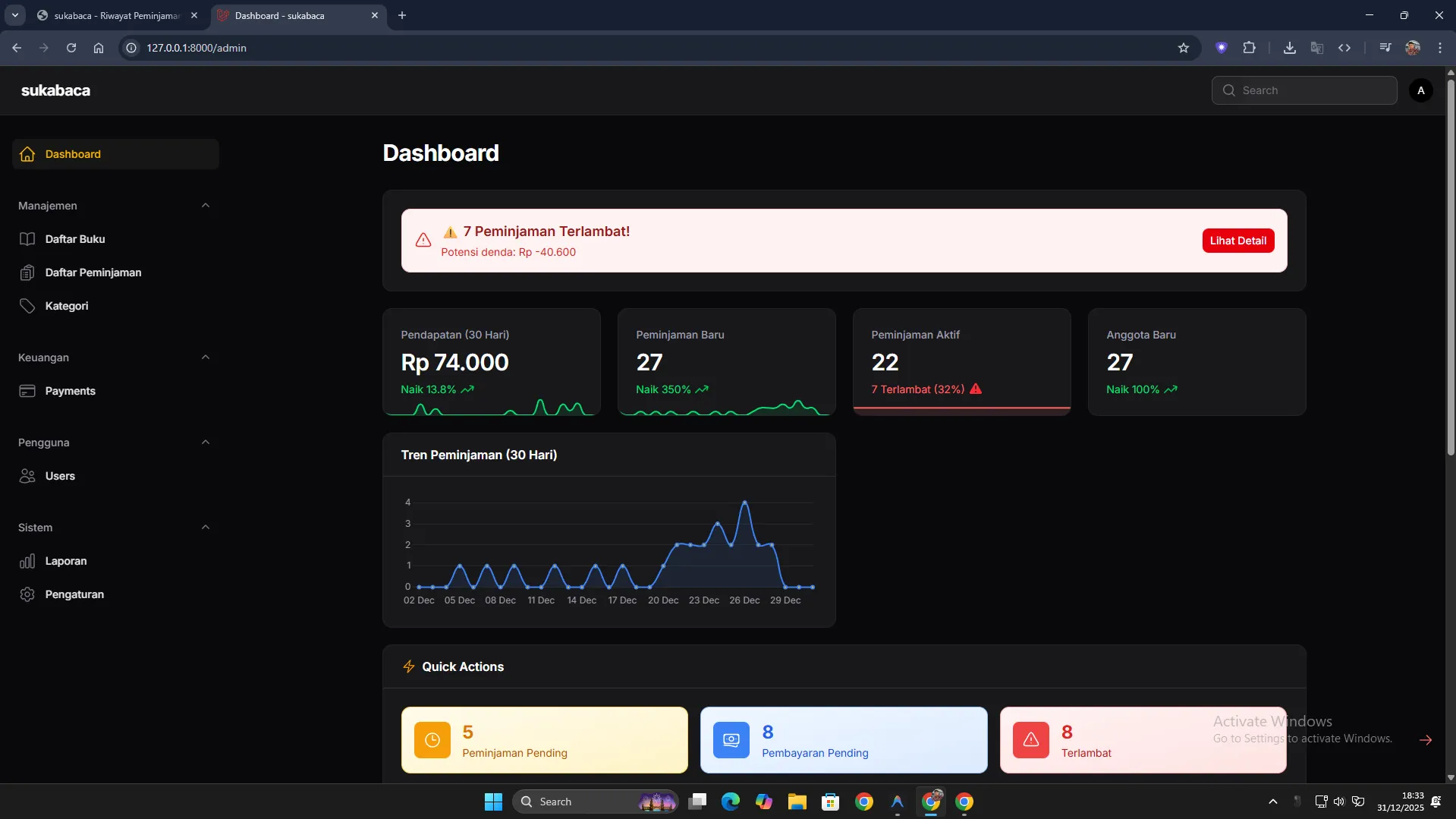 Automatic calculation of overdue days and fine amounts.