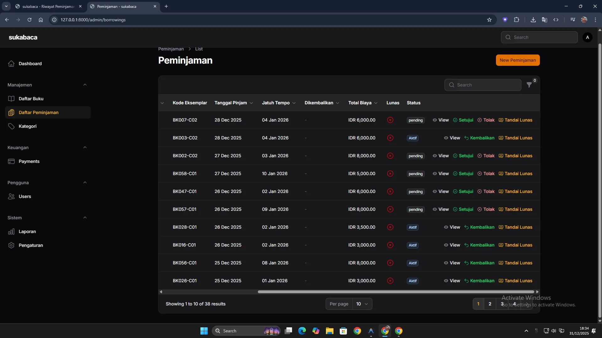 Accurate status tracking (Available, Borrowed, Lost, Damaged).